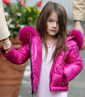 S&K also walked across the street to get Suri's favorite hot drink from Starbucks.Suri is wearing Hot Pink Puffer Jacket with Fur Trim by Blauer Kids, this jacket retailed for 465 USD.