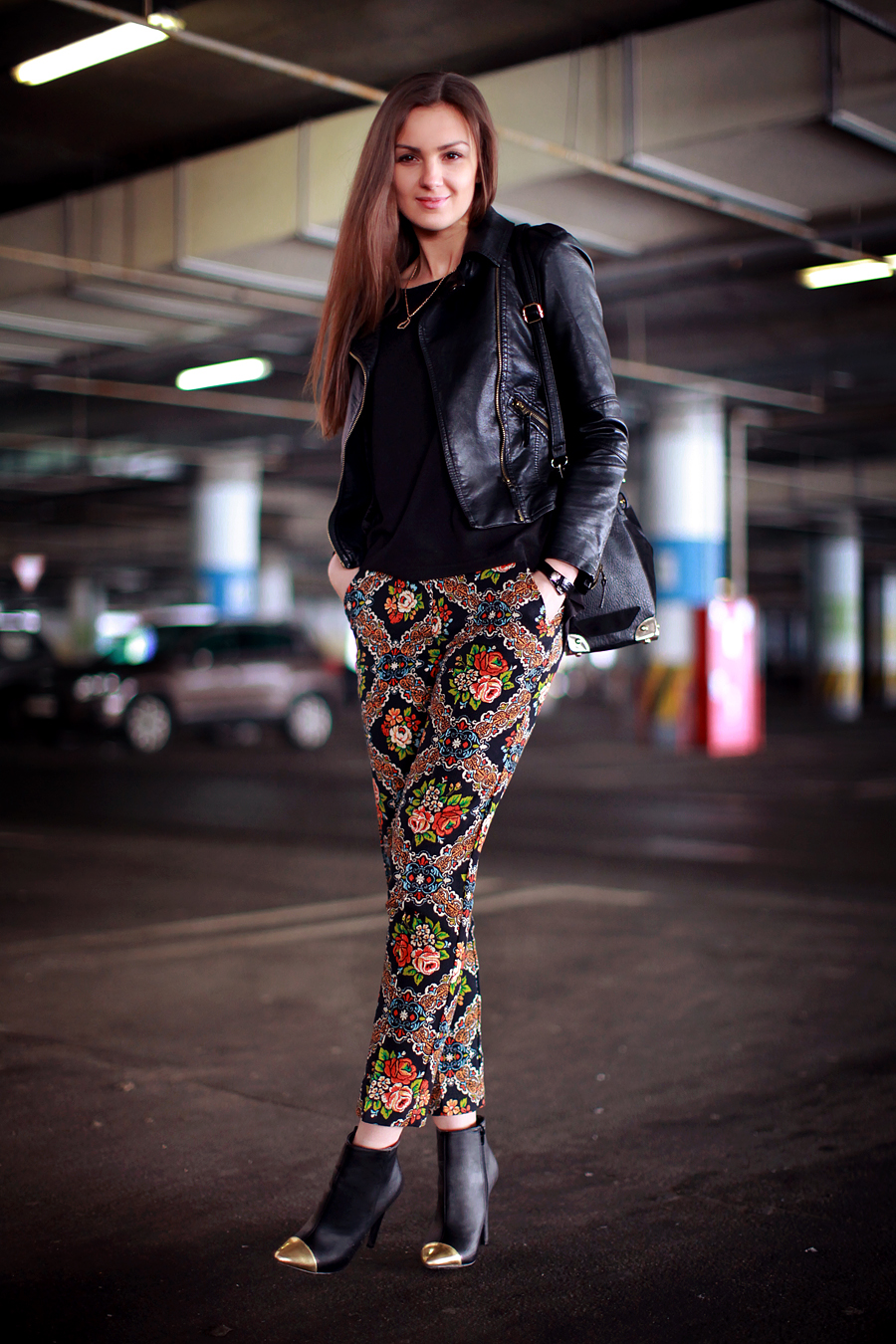 I don't believe I've ever posted photos from a parking lot on this blog, but the nasty weather outside calls for creative thinking :) I'm wearing tapestry pants I got a while ago that make my bum look twice as large, but I don't mind as I really like the print.